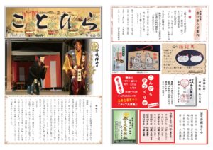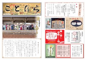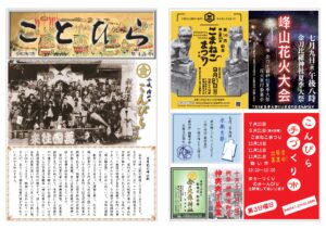 ことひら 平成16年7月 第1号(復刻版) 御鎮座二百年祭 準備事業 竣功台風二十三号の傷跡 平成16年12月 第2号 ごあいさつ 金刀比羅神社 宮司 脇阪卓爾二百年祭準備事業 経過 平成17年7月 第3号 ご協力のお願い 金刀比羅会 会長 金刀比羅神社 責任役員 髙田 一ことひら会 運営内容の見直し 組織の拡充 平成17年12月 第4号 紅葉祭 大盛況境内点描 手水舎 平成18年7月 第5号 境内点描 狛ネコ 平成18年12月 第6号 二百年祭準備委員会 解散御礼のご挨拶 二百年祭奉賛準備委員会 委員長 藤田兵一郎二百年祭準備事業 事業報告 奉賛者御芳名 平成19年7月 第7号 拝殿御扉修復山上消火設備設置境内点描 亀の池 平成19年12月 第8号 京極家当主ご臨席のもと峰山京極会 発足防火防犯警報設備設置錦織米市翁顕彰碑 竣功紅葉祭 大にぎわい 平成20年7月 第9号 二百年祭奉賛会 大祭執行へ向けて 事業開始記念大祭執行へご協力のお願い 金刀比羅神社二百年祭奉賛会 会長 吉村孝道境内点描 青銅燈籠 平成20年12月 第10号 自衛消防協力隊 発足 消防訓練 実施亀の池 大掃除 実施京極家繁栄祈願祭執行氷雨の中で 紅 葉 祭境内点描 佐々木社 平成21年7月 第11号 桜植樹と境内美化のご奉仕手作り鎧兜 できました。記念大祭へ二百年祭奉賛会 奉賛者御芳名板設置 平成21年12月 第12号 百年前のこんぴらさん二百年祭へ向けて 屋台特別展示こんぴら手づくり市 始まりました紅葉祭におばけ大会大雨で 崖崩落 平成22年7月 第13号 二百年前のこんぴらさん「小象山神輿会」発足こんぴら手づくり市 の宣伝マンふくろうがいた!こんぴらさんの 1day cafe 平成22年12月 第14号 大神輿奉輿巡行例祭神輿渡御祭 宵宮祭に屋台展示も大神輿大修理へ泉町屋台蔵新築新嘗祭並に金刀比羅会会員繁栄祈願祭併せ紅葉祭斎行京極家繁栄祈願祭月例 こんぴら手づくり市 平成23年7月 第15号 御鎮座二百年式年大祭 奉幣祭 併東日本大震災復興祈願祭創建二百年 歴史に刻む足跡京極家御当主より御言葉賜る八十年を経て「吹貫」新調お披露目丹後こども論語塾青空の下コンサート チャリティーフリーマーケット 平成23年12月 第16号 御鎮座二百年記念例祭こま猫二〇〇対 ずらり宵々宮 宵宮祭 奉納披露神輿山車屋台 総巡行 総披露祭礼絵巻 総巡行 峰山伝統芸能総披露二百年から始まる大神輿修繕竣功 平成24年7月 第17号 今は昔のこんぴらさん御神輿の沿革新役員総代就任 金刀比羅会新体制に 平成24年12月 第18号 大鳥居の来歴境内社頭の変遷 平成25年7月 第19号 今は昔のこんぴらさん 神門神門の来歴二百年祭奉賛会解散御鎮座二百年記念誌発刊夏季大祭花火実行委員会 平成25年12月 第20号 境内に座る 狛犬たち百年前の 石段創建時の 水盤 平成26年7月 第21号 今は昔のこんぴらさん 儀式殿斎館と儀式殿楷の木を植樹松養生作業 平成26年12月 第22号 ちりめんの神に仕える 狛猫石猫から狛猫へ弘まる 猫プロジェクトこま猫の縁起物 平成27年7月 第23号 今は昔のこんぴらさん峰山駅開通と山車屋台有終の姿大正と昭和の峰山 平成27年12月 第24号 拝殿の来歴マリンバ 奉納コンサート開催ねこプロジェクト「猫石」さん 平成28年7月 第25号 金鉢のご神水手水舎の来歴紅葉植樹楷の木 すくすくと 平成28年12月 第26号 こまねこまつり七十回記念 こんぴら手づくり市陶器猫・猫の顔・猫の目ねこ会議の活動展示に成果まち歩き 峰山に往年の賑わい 平成29年7月 第27号 「丹後ちりめん回廊」日本遺産 認定三百年前に紡がれた 丹後ちりめん丹後ちりめん創始と藩政丹後ちりめん回廊の象徴志のみで盛上げる 平成29年12月 第28号 祭礼絵図 京都府暫定登録文化財に指定失われた文化財を遺す絵図往事の祭礼が鮮やかにこまねこまつり中止も盛り上がる町なか 平成30年7月 第29号 峯山藩主京極家のご縁京極高備公のご事蹟京極家御廟所の惨状 平成30年12月 第30号 御即位三十年と御代替の慶事このねこさがせ このまちのこせこまねこまつり 荒天も盛り上がる町なか 令和元年7月 第31号 令しく和やかな時代に奉納踊りも盛上げ 春季大祭執行広がるまちなかネコアート京極家ご一家ご臨席に御廟所復旧事業報告会金刀比羅会新体制を承認 令和元年12月 第32号 大御代の弥栄 大嘗祭を奉祝念願の好天に恵まれ こまねこまつり京極家廟所御門修復完了丹後夜の市開催まちなかネコアート また一つ 令和2年7月 第33号 疫癘終息の祈りご祭神のご神威を仰ぐ災禍からの復活新たな取り組み京極家御廟所 府指定文化財に復旧事業の進捗金刀比羅会総会書面開催 令和2年12月 第34号 疫病禍での取り組みコロナ禍にも負けず こまねこまつり 開催狛猫 市文化財に指定疫病退散祈願 奉納太鼓臨時花火大会開催昔の写真展 令和3年7月 第35号 丹後繁栄の中心峰山市街地の変遷復興の希望と祈り生まれ変わった新旧の市街地大正に行ってみる 令和3年12月 第36号 大正時代の活気御旅所の橋町内の近代化コロナ禍にも工夫を凝らし こまねこまつり 開催 令和4年7月 第37号 峯山藩四百年の御恩嶺山から峰山へ 峰山の街づくり権現山と金峰さん金峰さんと峰山神恩と善政の四〇〇年 