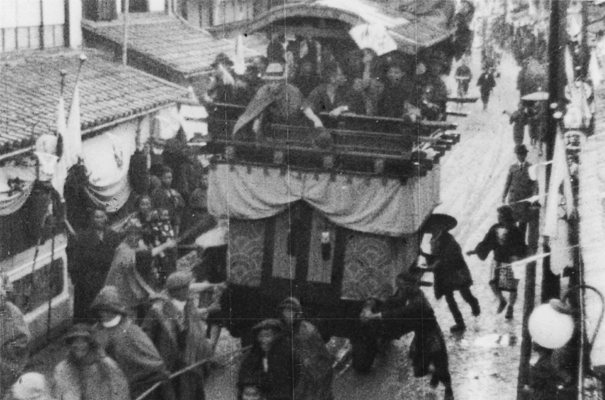特にこの1年半後に起きる北丹後地震で失われた町内の山車屋台が勢揃いで巡行する姿をはじめ、新地の芸妓衆、失われる直前の町の様子は見物です。